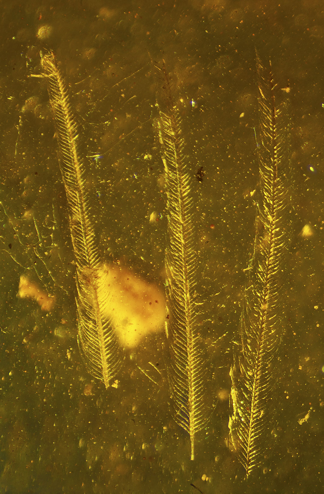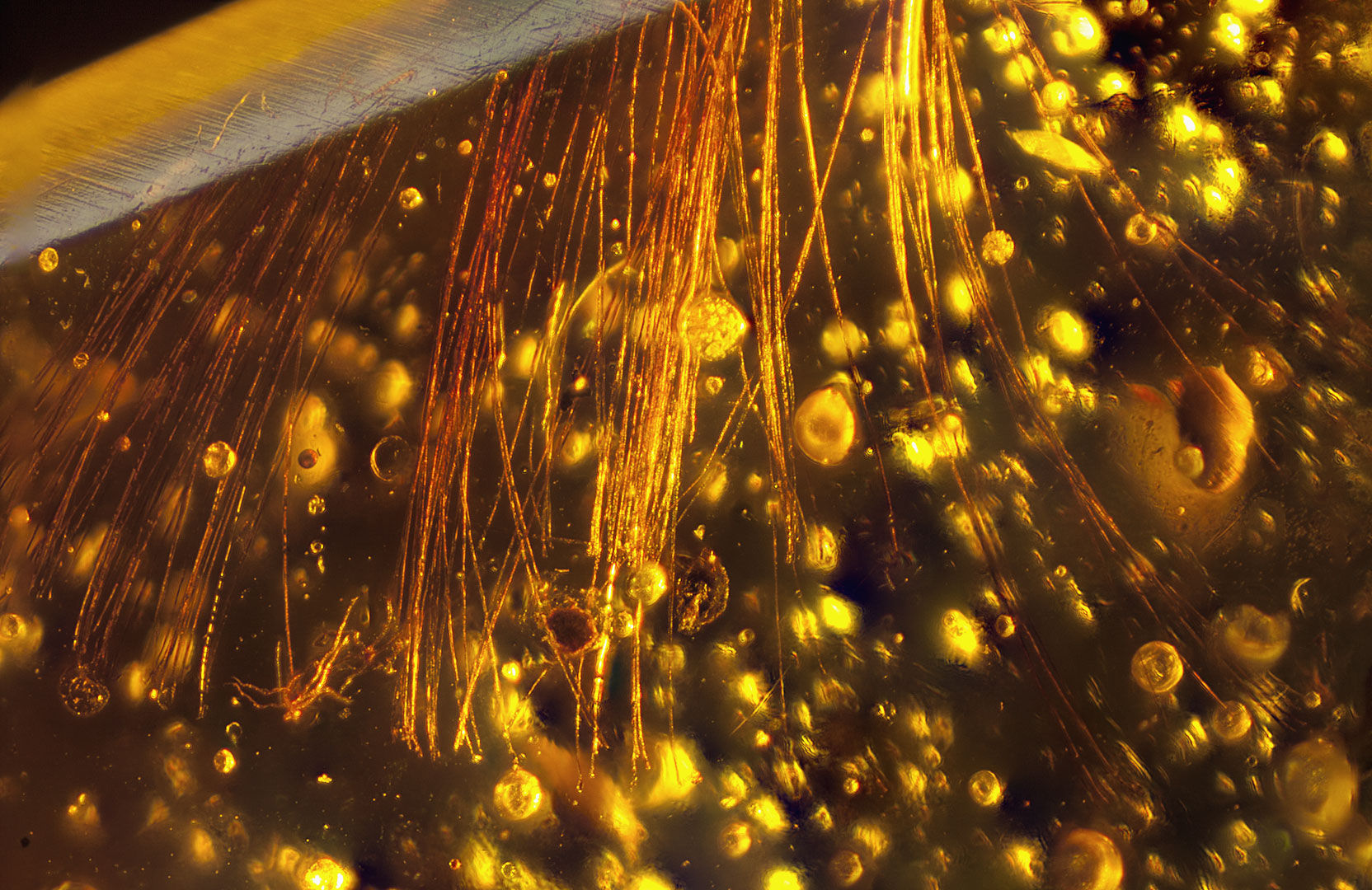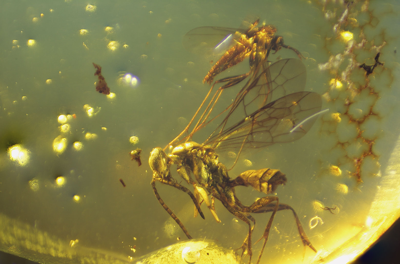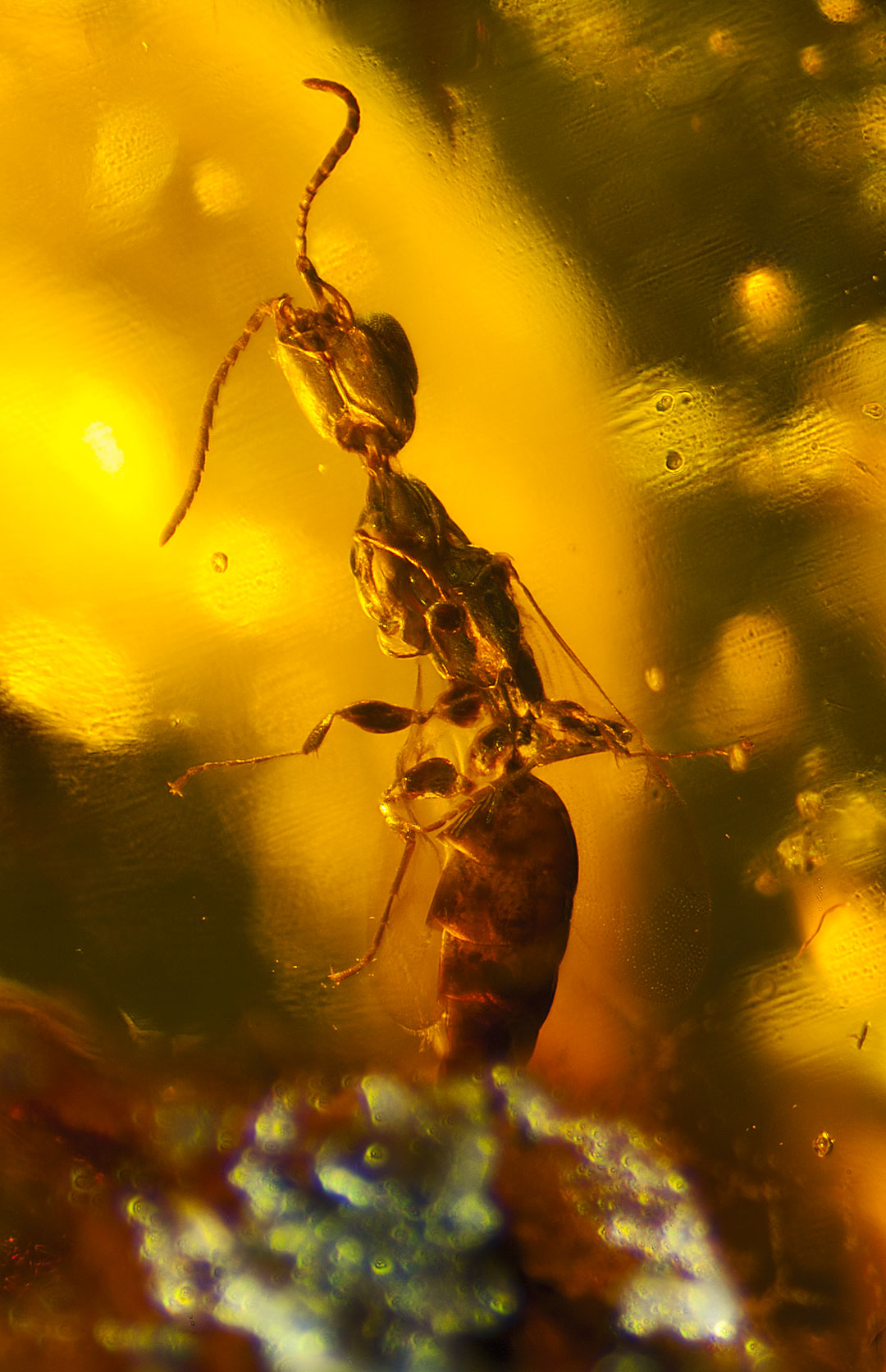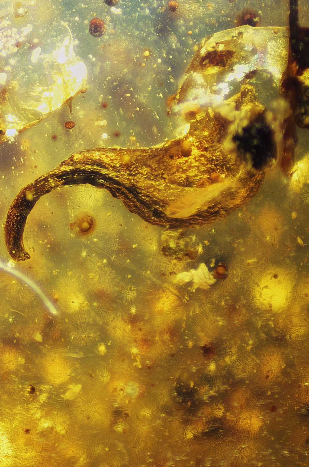 Photographs of fossil inclusions in Burmese amber. Estimated age 94-98 million years.