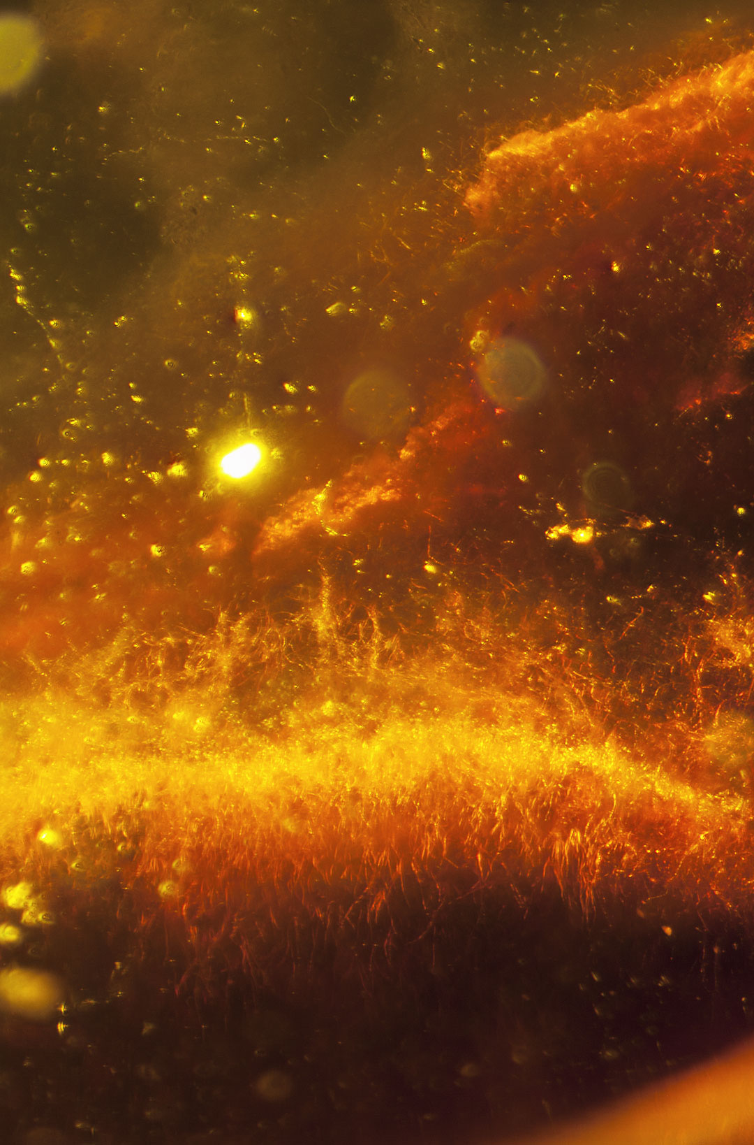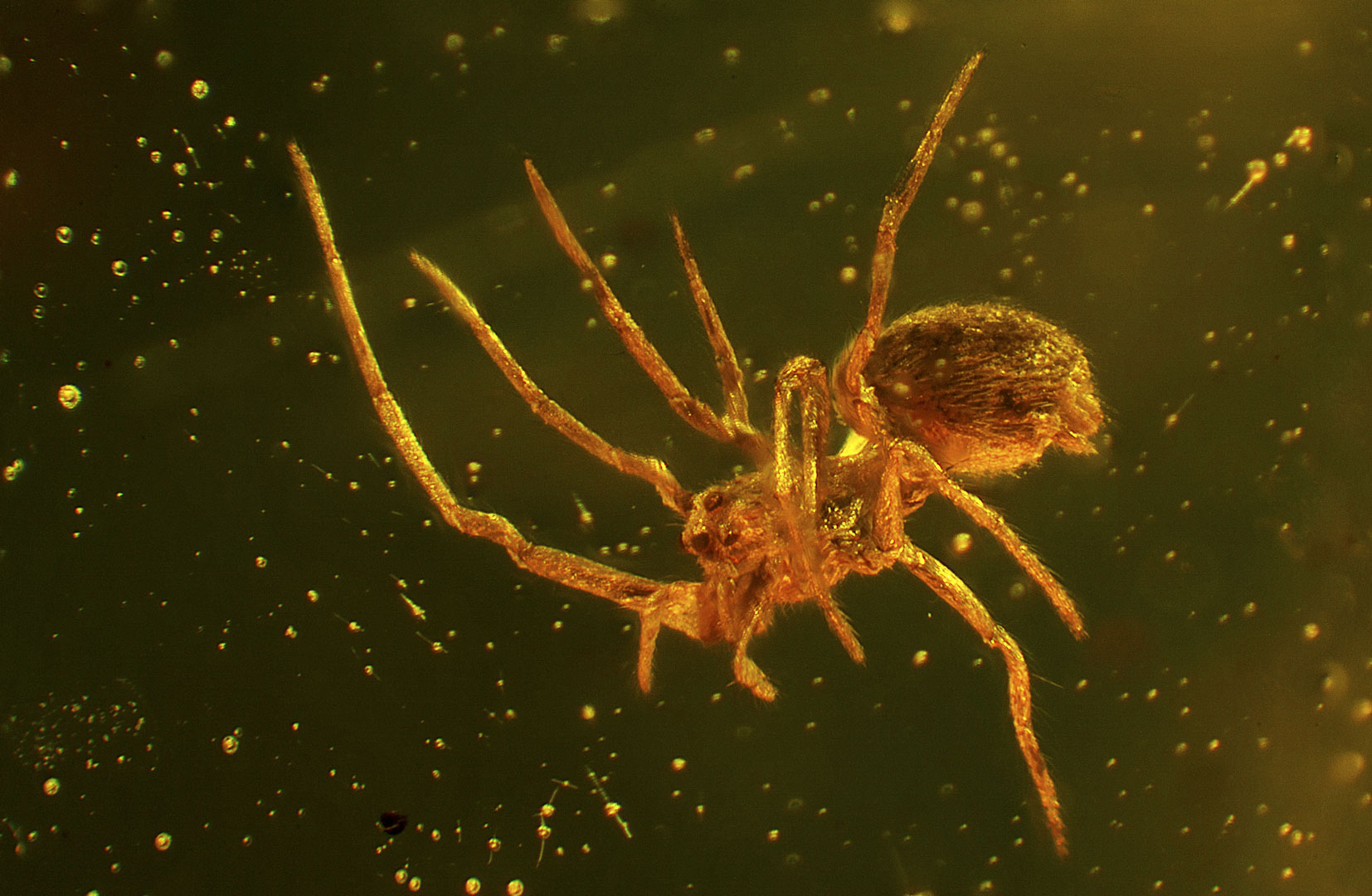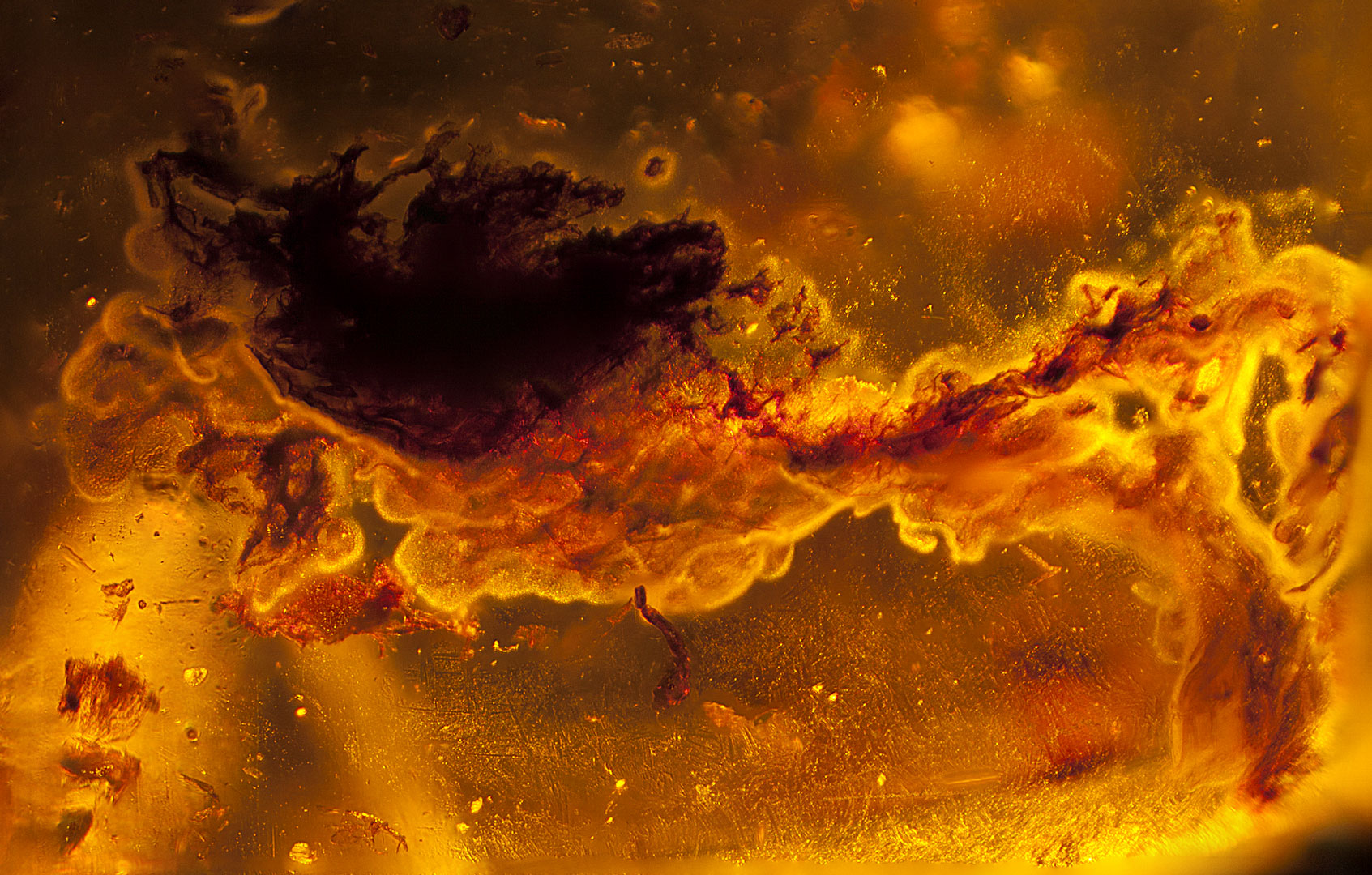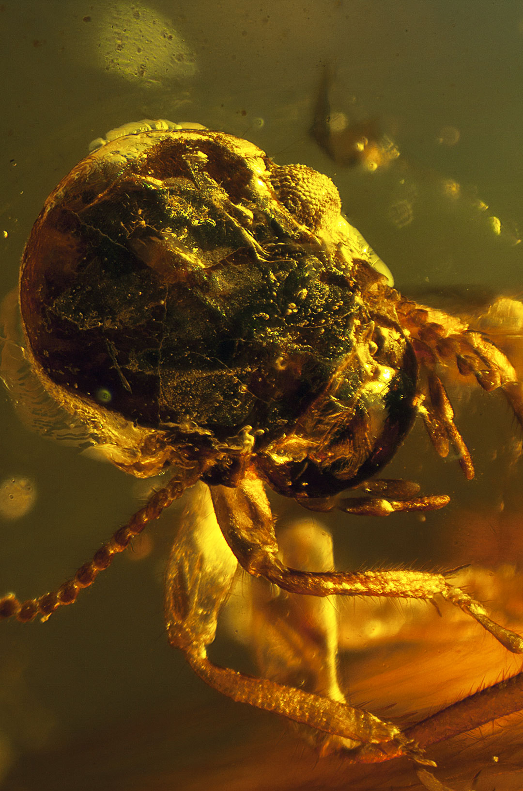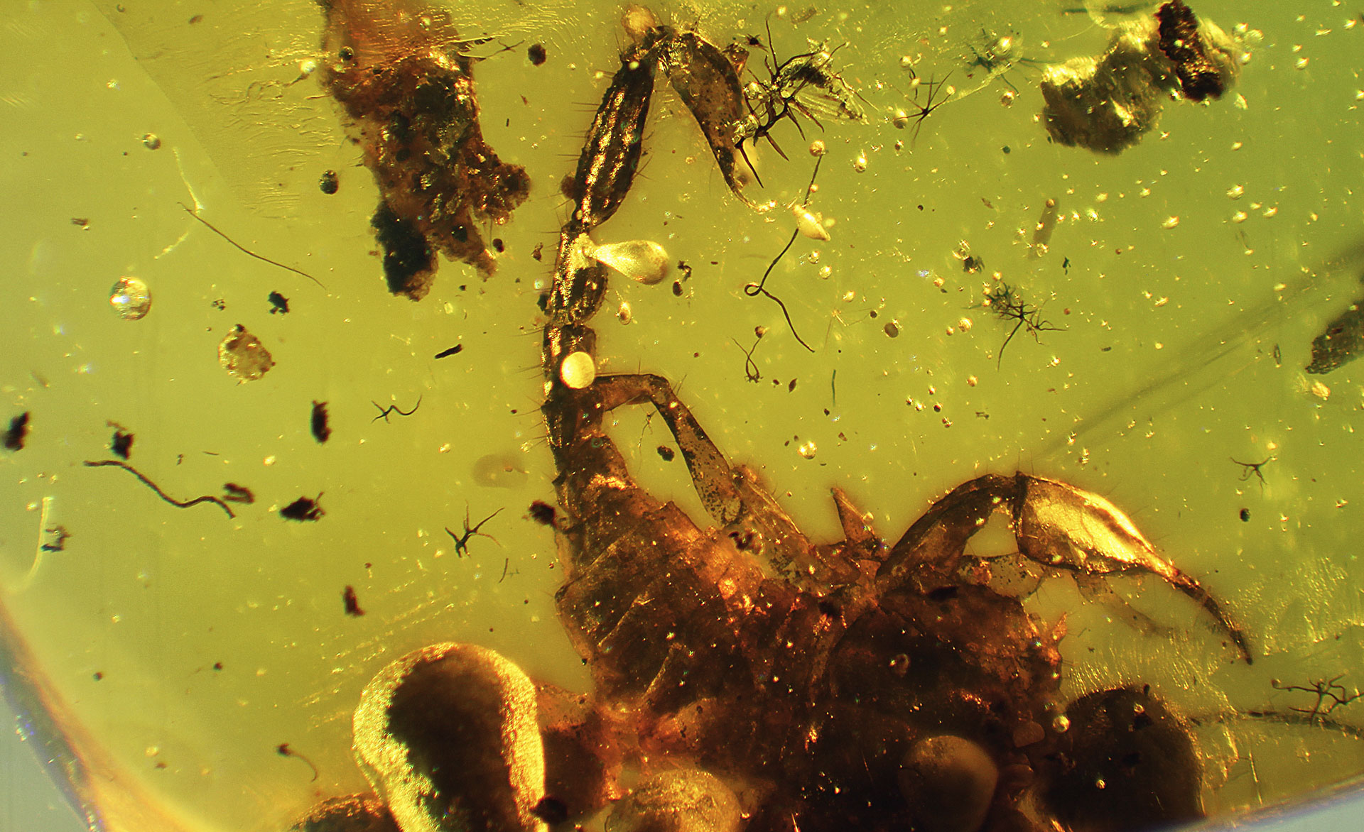 Photographs of fossil inclusions in Burmese amber. Estimated age 94-98 million years.